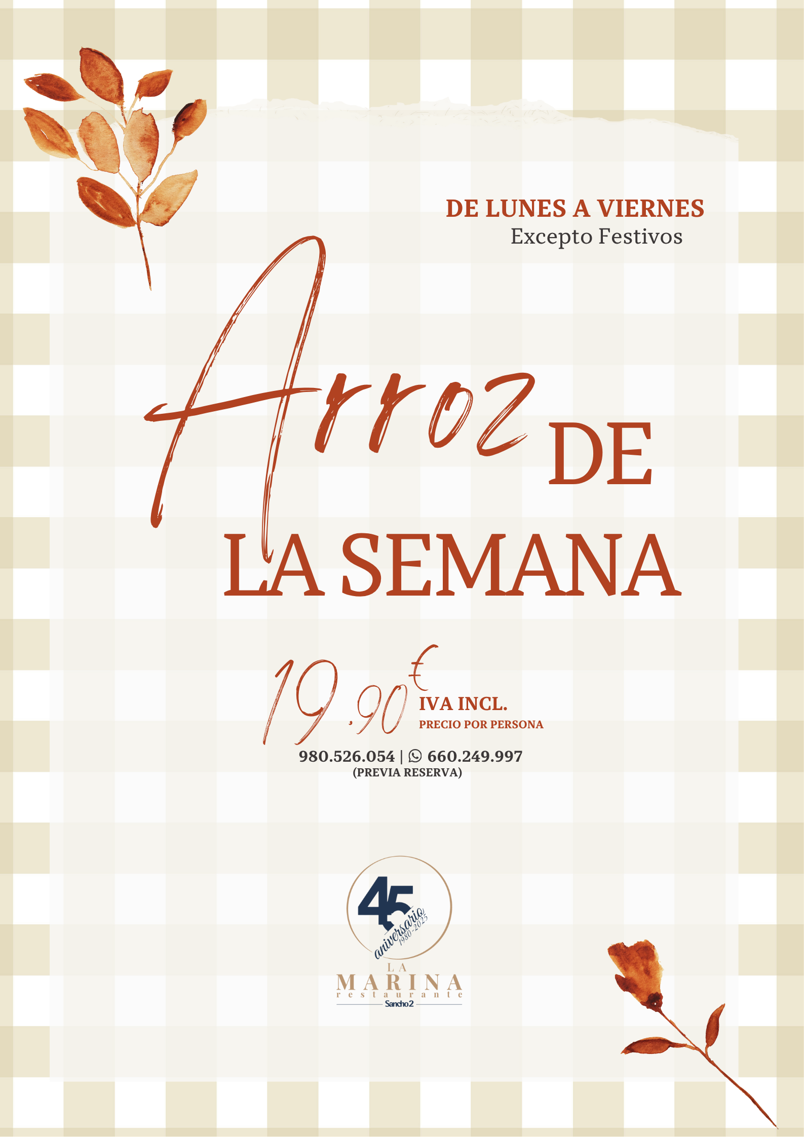 Degusta nuestro arroz de la semana. De lunes a viernes (excepto festivos)
