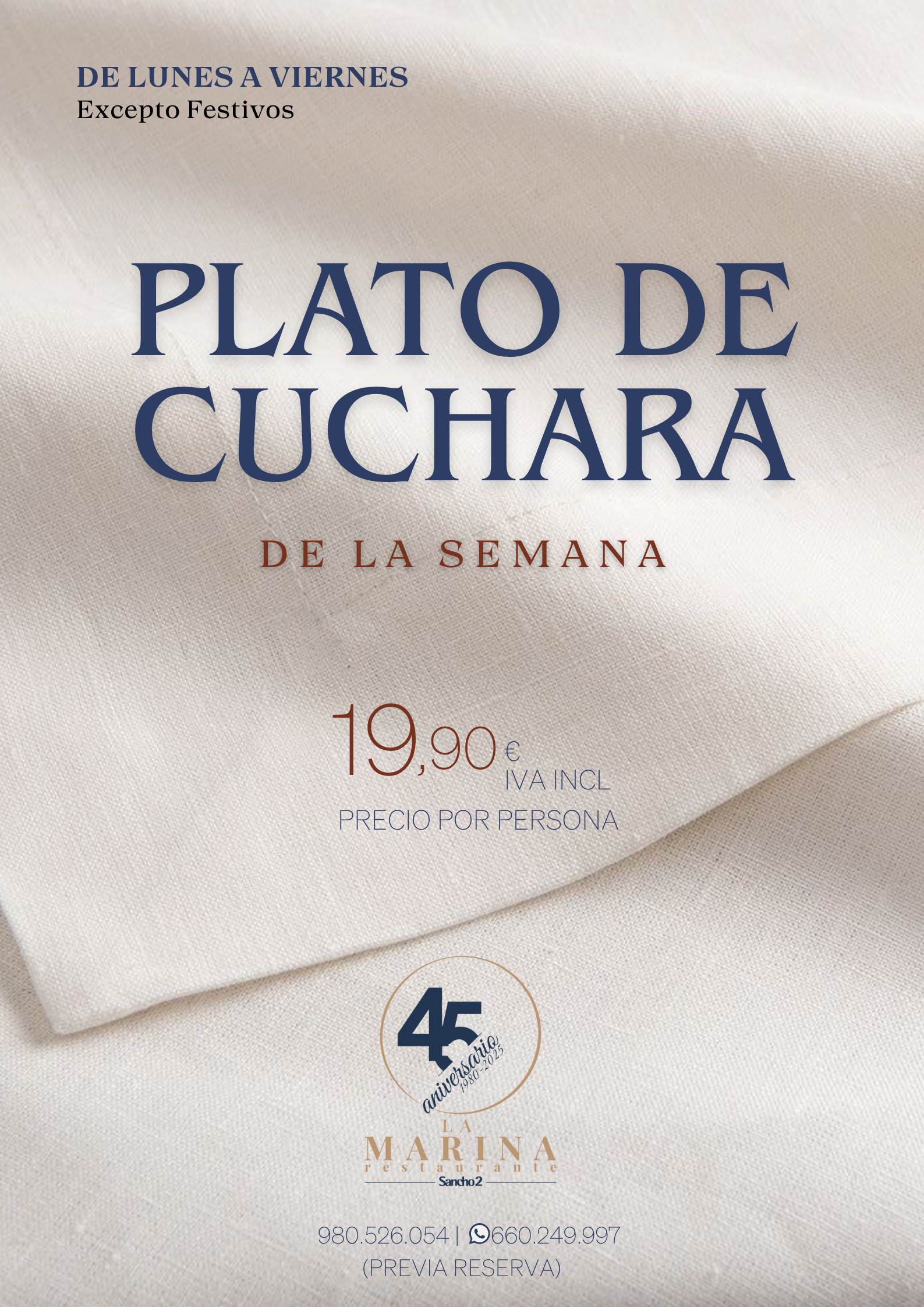 De lunes a viernes (excepto festivos)